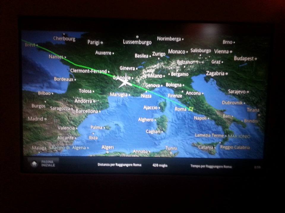 A poco più di cinque ore dalla partenza, la rotta diventa più diretta e andiamo verso Fiumicino. Come al solito, sorvoleremo la Francia e prima dell’arrivo prenderemo la colazione.