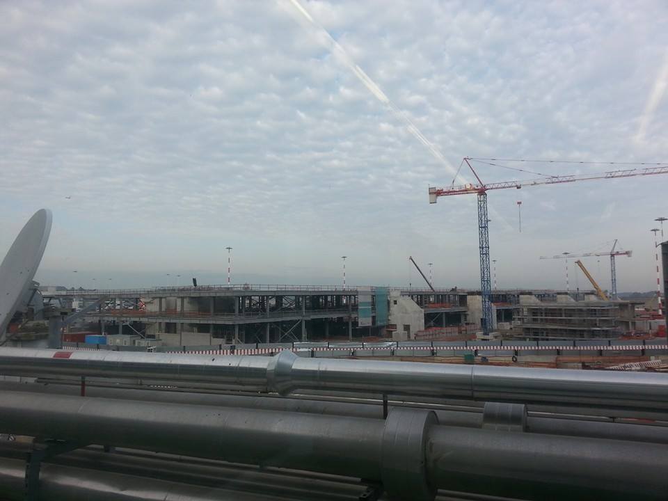 Il bellissimo panorama della lounge, chissà se e quando finiranno il molo coi nuovi gate.