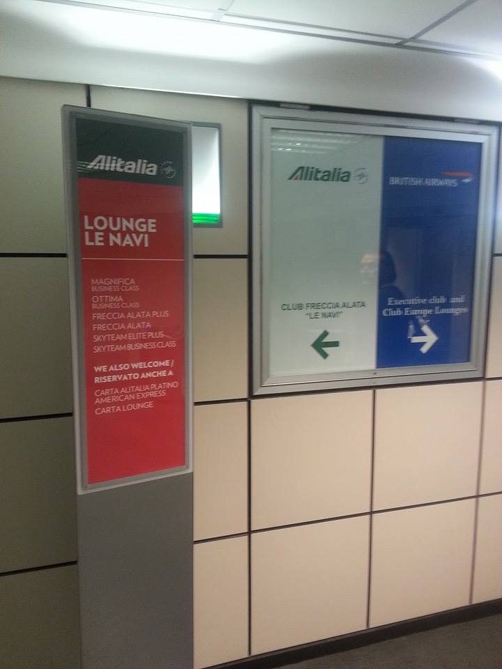 Questa è l’entrata della lounge “Le Navi” di Fiumicino, normalmente utilizzata dai passeggeri premium che si imbarcano attraverso i gate H (sì, quelli da terzo mondo).