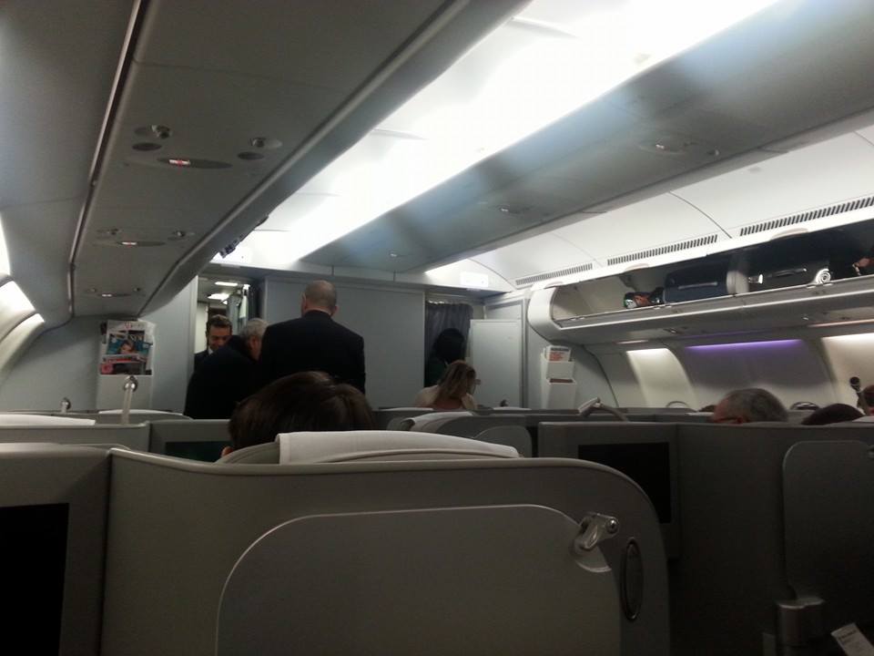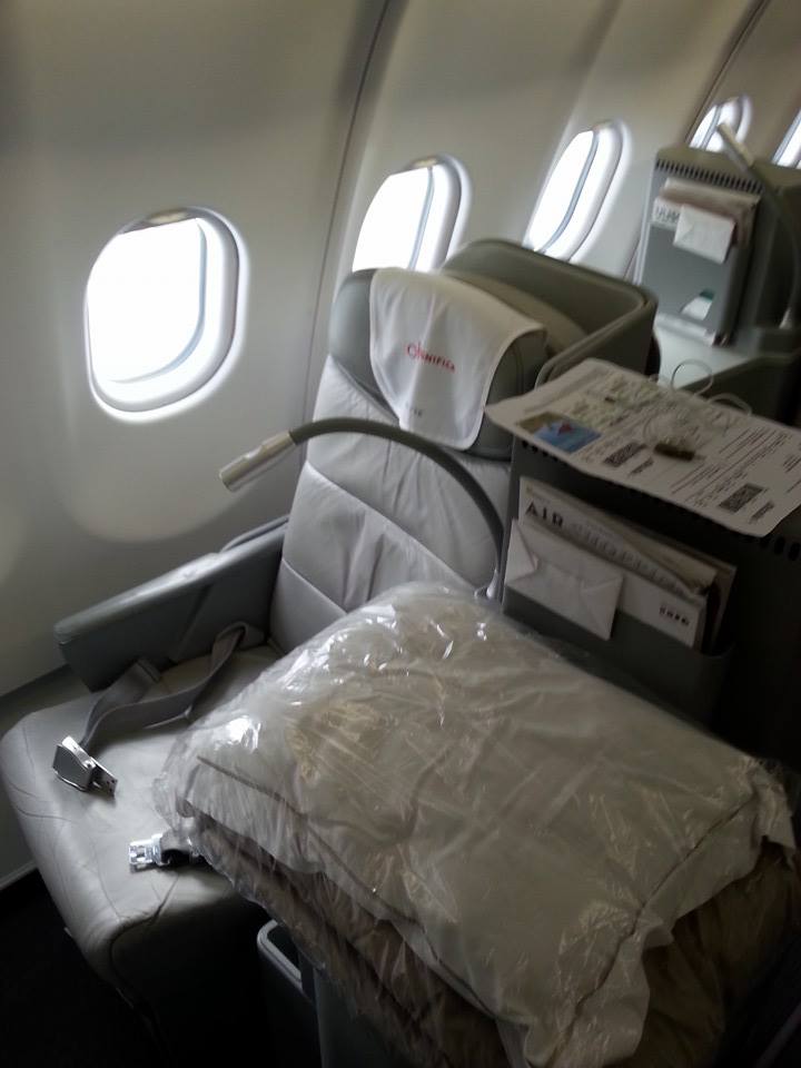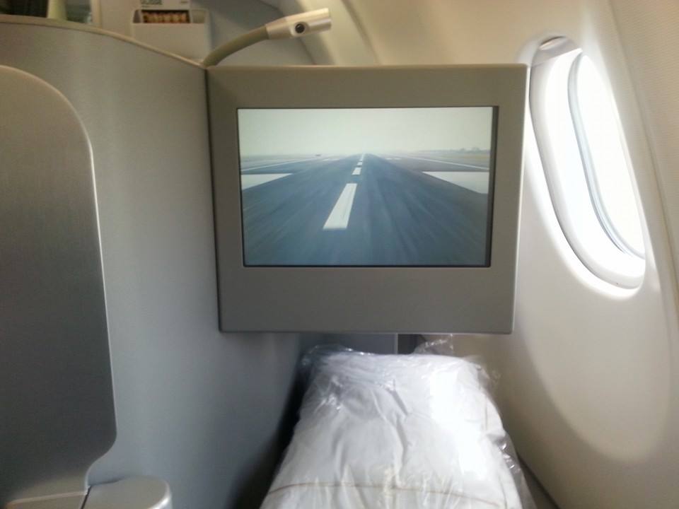 Eccomi qui, al posto 1A. Come ho già detto non sono un fan delle prime file, ma nel momento in cui ho fatto il check-in online l’1A era l’unico posto disponibile. Scambio quattro parole col comandante del volo e la capocabina, e mi siedo.