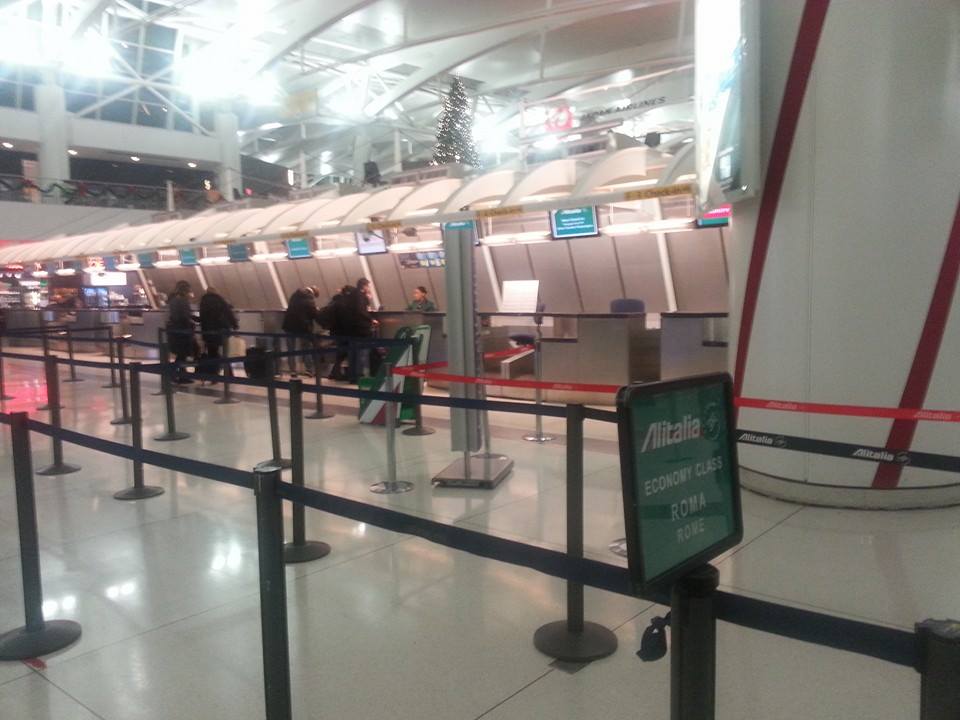 Mi presento al banco 4, riservato ai soci Premium Alitalia e SkyTeam, col passaporto e tre bagagli da stiva. La tariffa Business garantisce due pezzi da 32kg e con la carta Freccia Alata Plus ho diritto ad un terzo pezzo da 32kg, per un totale di 96kg di franchigia (che per le mie esigenze è stratosferica dato che non credo di aver mai superato il peso complessivo di 50kg). La collega del check-in rimane spiazzata dai miei bagagli, chiama la biglietteria e la collega lì presente le conferma che per il terzo pezzo non devo pagare nessuna penale. Vabbé, qualche svista può capitare a tutti ed è sempre meglio chiedere; a check-in finito procedo verso il gate.