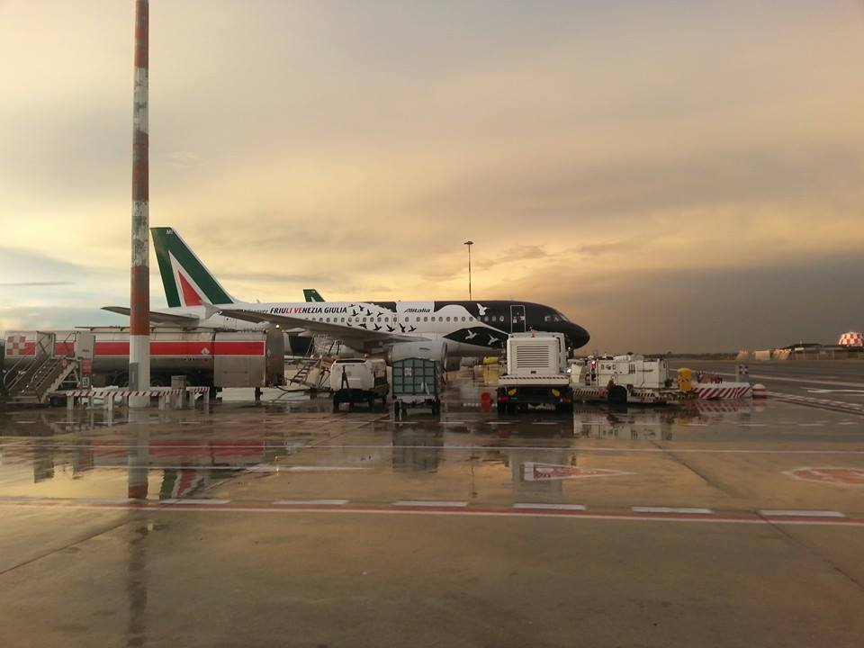 Il nostro compagno di parcheggio, EI-IMI con livrea speciale del Friuli Venezia Giulia, ormai riverniciato. Bella livrea, vista da vicino più di una volta sia come passeggero che come addetto.