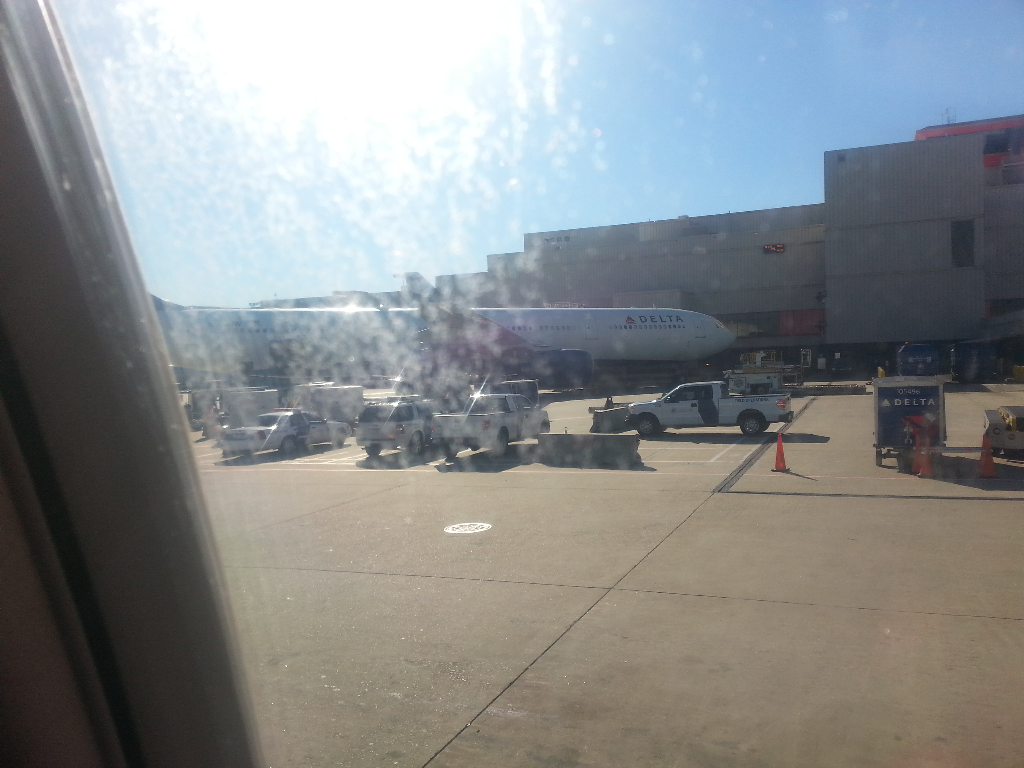 Il volo partirà in ritardo per traffico aereo (Charlotte è già quello che è e il nostro volo è diretto al Kennedy, immaginate il caos). Due passeggeri con coincidenza per Doha, credo operata da Qatar, sono stati fatti sbarcare perché avrebbero sicuramente perso la loro coincidenza. A loro è stata garantita la riprotezione via Londra (probabilmente Heathrow), e ciò ha comportato qualche minuto di attesa exra per permettere agli operatori di trovare i bagagli dei due passeggeri e rimuoverli. Entrambi i passeggeri erano in First, a pochi passi da me.