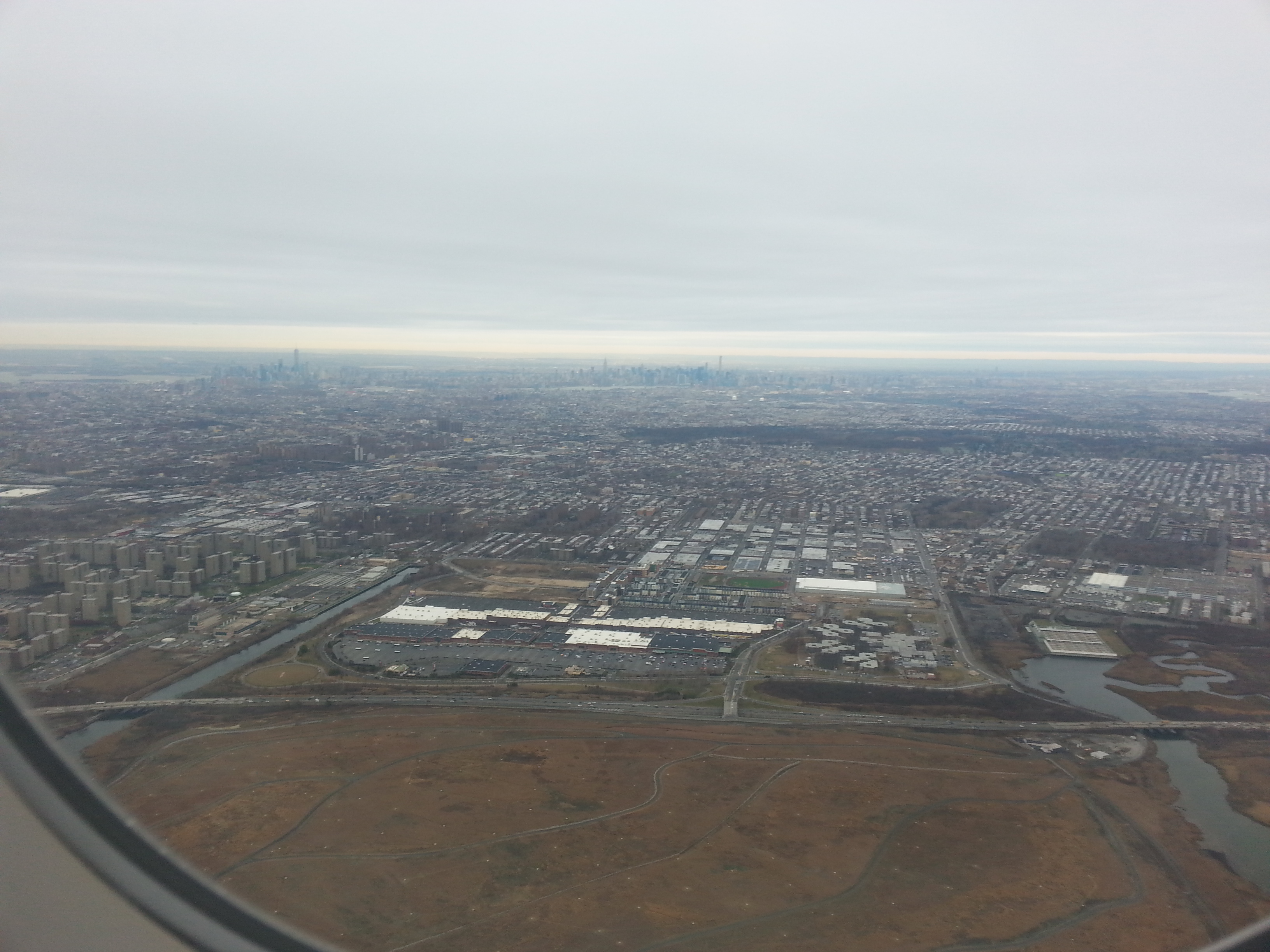 Via, siamo in volo! Questo è il paesaggio tipico del Queens, e il lontananza potete notare la skyline di Manhattan.