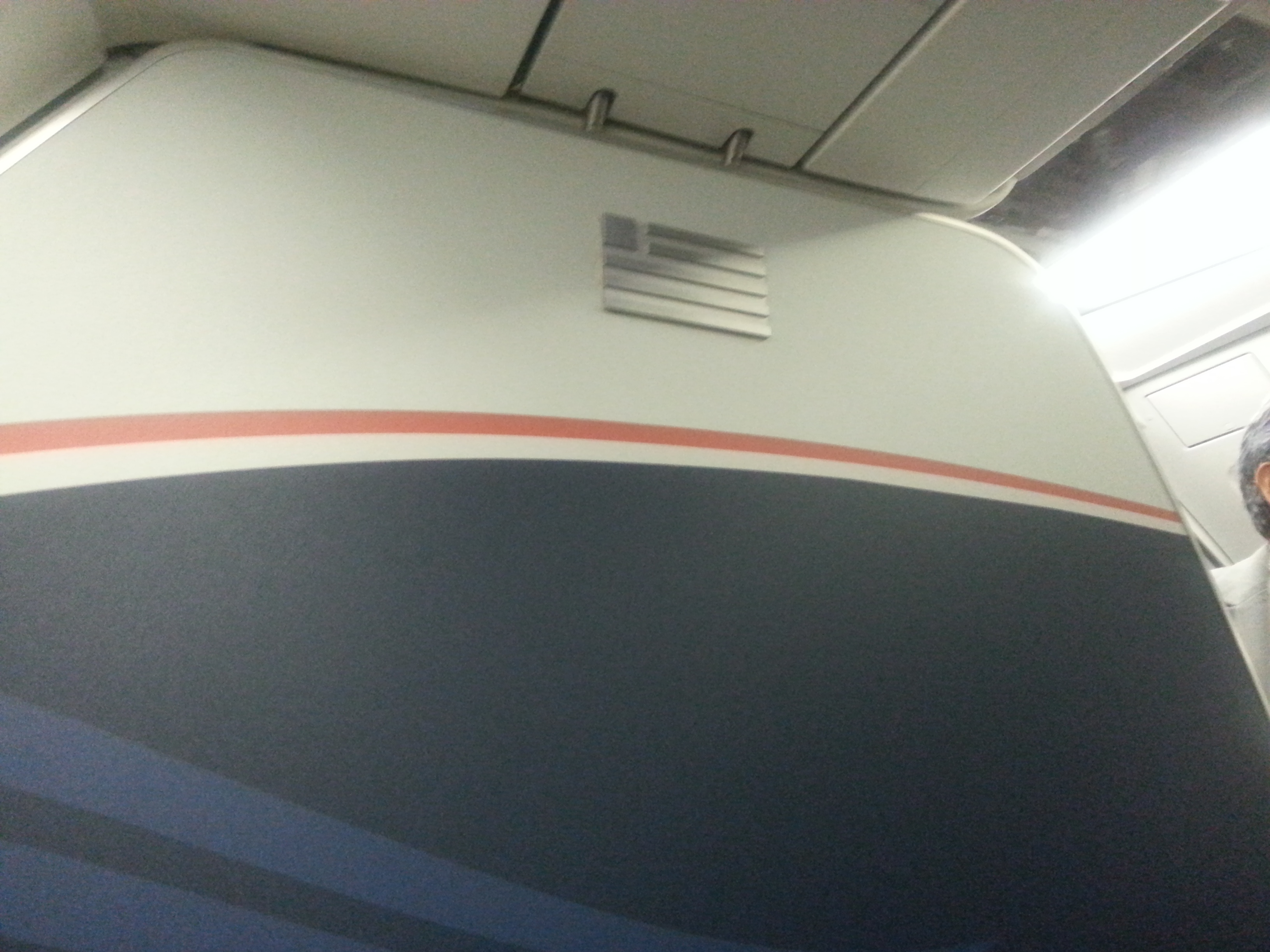Barriere che separano la First dall’Economy. Ops, si vede anche un ciuffo dei miei capelli.