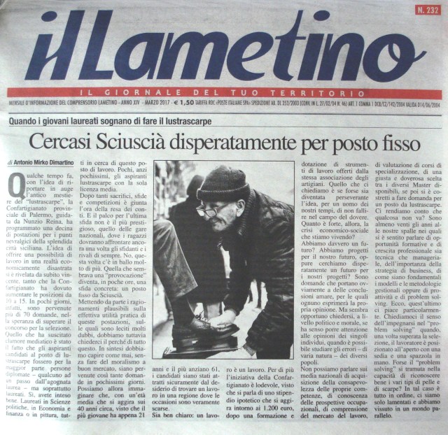 Qualche tempo fa, con l’idea di riportare in auge l’antico mestiere del “lustrascarpe”, la Confartigianato provinciale di Palermo, guidata da Nunzio Reina, ha programmato una decina di postazioni per i punti nevralgici della splendida città siciliana. L’idea di offrire una possibilità di lavoro in una realtà economicamente disastrata si è rivelata da subito vincente, tanto che la Confartigianato ha dovuto aumentare le posizioni da 10 a 15. In pochi giorni, infatti, sono pervenute più di 70 domande, nella speranza di superare il concorso per la selezione. Quello che ha suscitato clamore mediatico è stato il fatto che gli aspiranti candidati al posto di lustrascarpe fossero per la maggior parte persone diplomate – qualcuno ad un passo dall’agognata laurea – ma soprattutto laureati. Si, avete inteso bene. Laureati in Scienze politiche, in Economia e finanza o in pittura, tutti in cerca di questo posto di lavoro. Pochi, anzi pochissimi, gli aspiranti lustrascarpe con la sola licenza media.