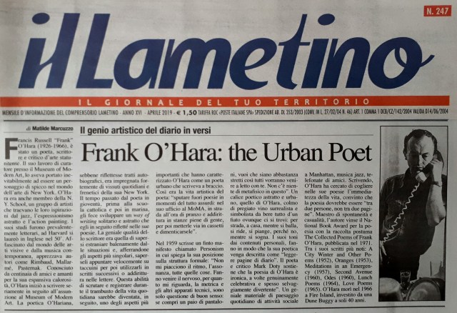 Pingback: Frank O’Hara: the Urban Poet – "La spada ferisce, la penna trafigge!" _ A lady in the news