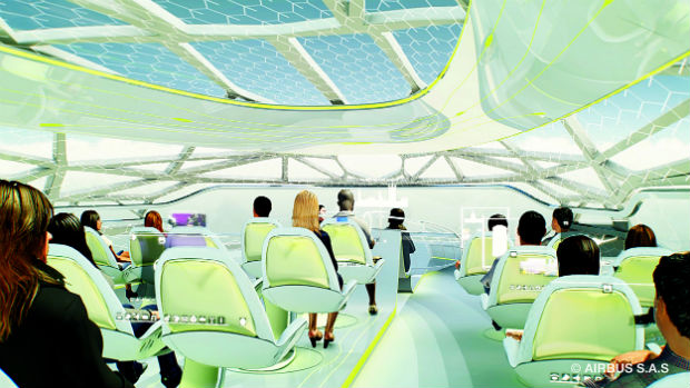 Nemmeno un anno fa, molti progetti provavano a proporre soluzioni ergonomiche per massimizzare la densità dei passeggeri a bordo. In figura, i design Aviointeriors. Fonte: CNBC.com.