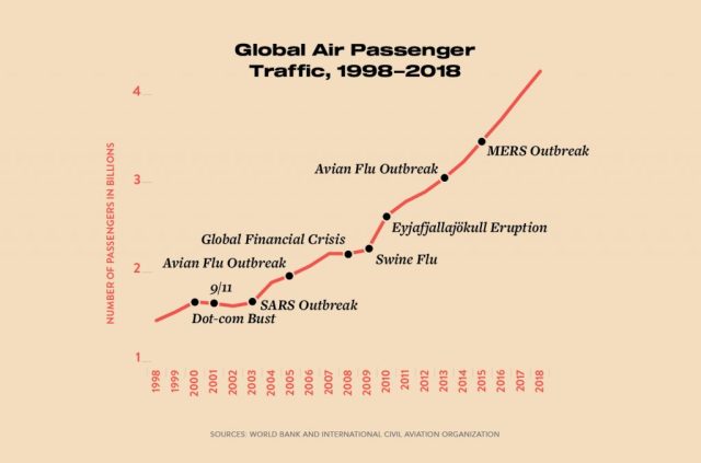 Il trasporto aereo mondiale ha retto egregiamente di fronte a grandi sfide. Come andrà questa volta? Fonte: Apex.aero.